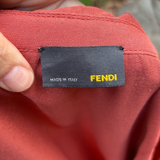 FENDI Orange Ruffle Front Silk Skirt, size 44