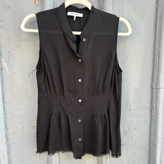 Frame Black Raw Edge Sleeveless Smocked Blouse, size Small