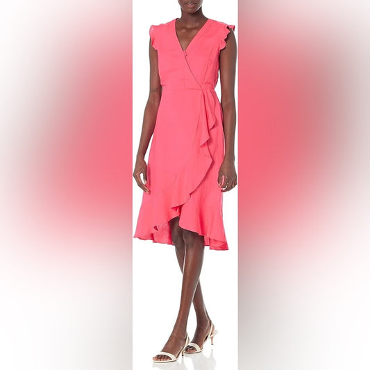 Karl Lagerfeld Linen Blend Faux Wrap Dress, size 4