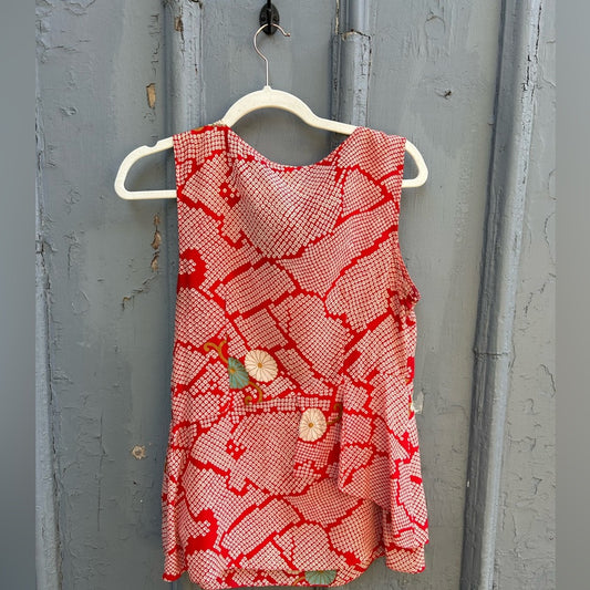 Liefsdottier Anthropologie red ruffle side silk blouse, size 6