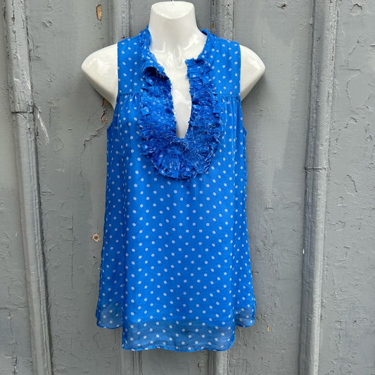 Anthropologie Blue Tassel Aperire Silk Blouse, size Small