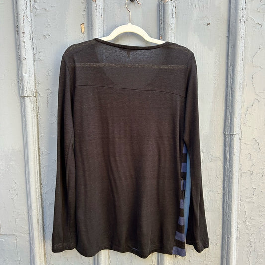 Sandro Blue Black Striped linen top with zipper, size “3” (M)