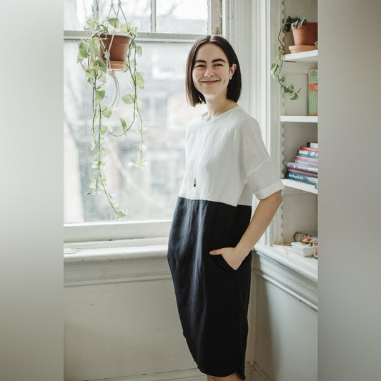 Valerie Dumaine Dionne Linen blend black and white dress, size XS (oversized)
