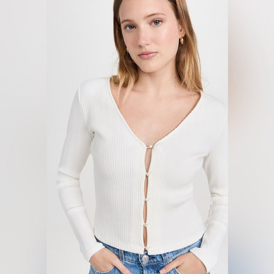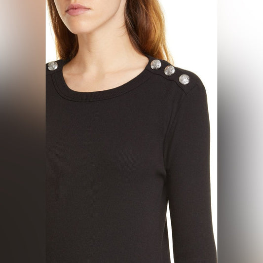Veronica Beard Jeans Black Mayer Button Shoulder Top, size L