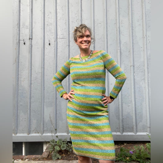 Vintage Tricosa Paris Striped Metallic Knit Dress, size Small
