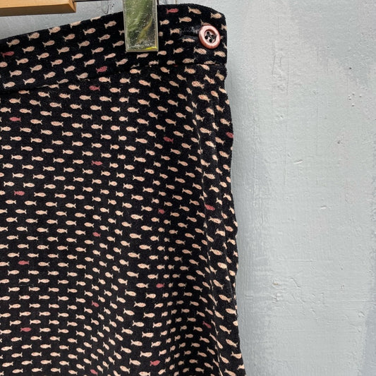Vintage 70s Velvet Fish Patterned Skirt, size Small