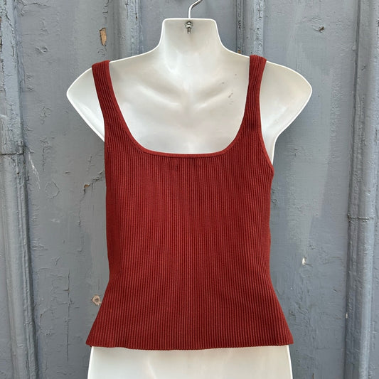 Babaton Rust Red Sculpt Knit Squareneck Tank, size Large