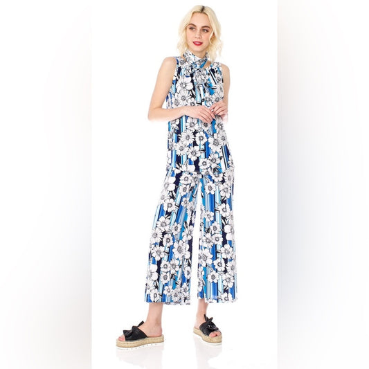 Bergstrom wide leg blue polka dot tie trouser, size 8