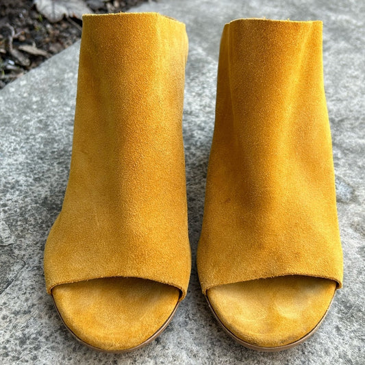 Bos & Co Mustard Peep Toe Block Heel, size 40 (Us 9)