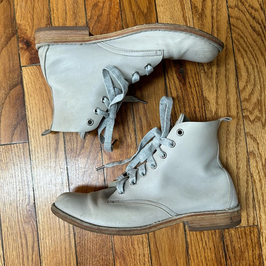 Brunello Cucinelli Grey Leather 7 hole Combat Boots, size 38.5