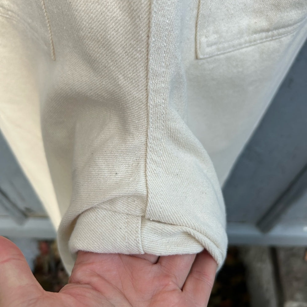 This jumpsuit from Alex Mill features a denim construction and a detachable waist tie. It has two front patch pockets, a back patch pocket and button fastenings along the sides. The fabric is mid-weight and non-stretchy.