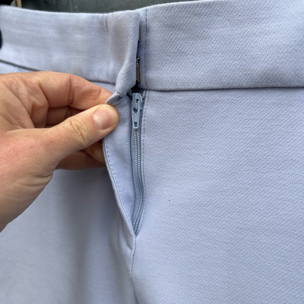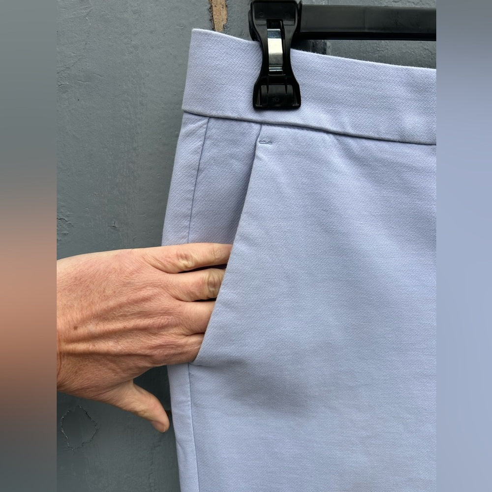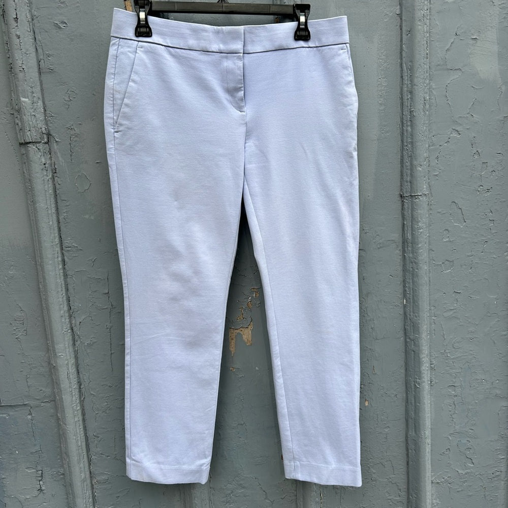 Ann Taylor Ice Blue Devin Fit Ankle Crop Trousers. Side pockets, zip fly.