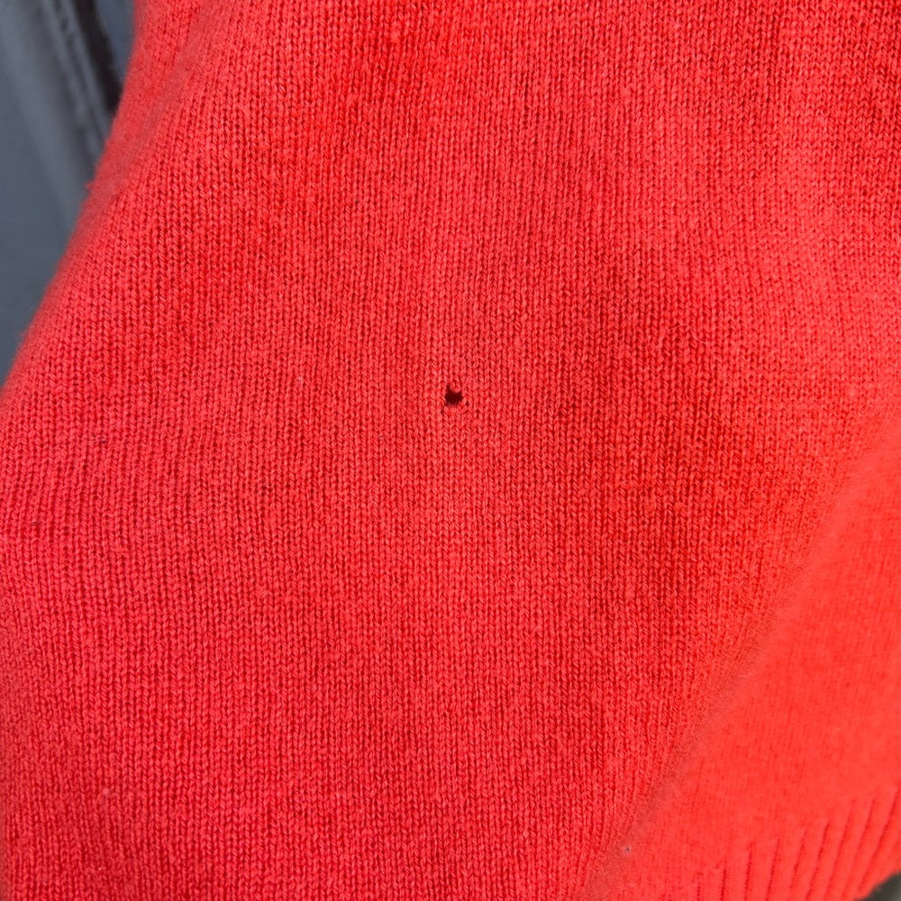 One owner. Good condition. One small mark in arm and a hole in the rear, both pictured.