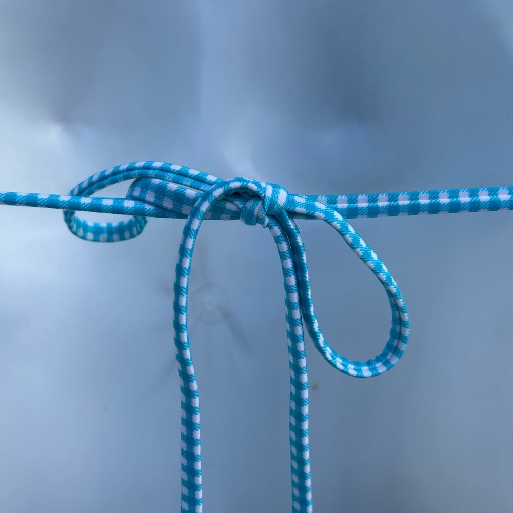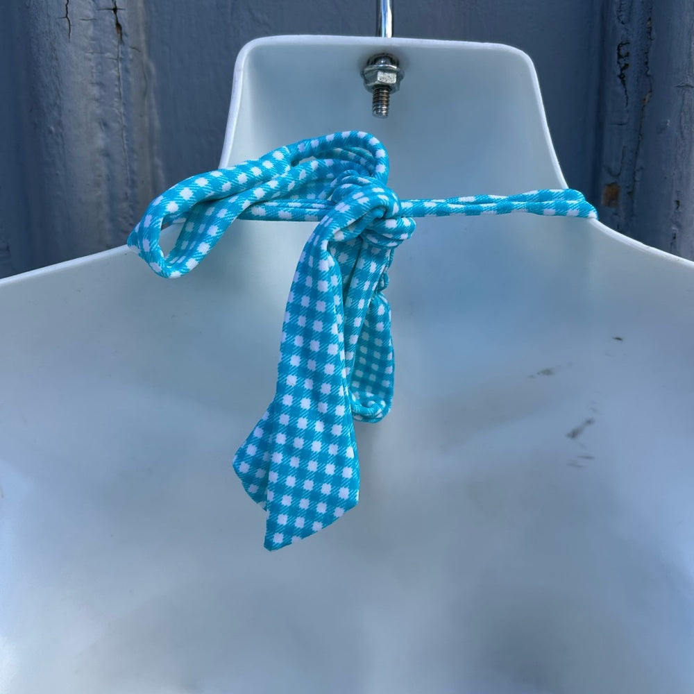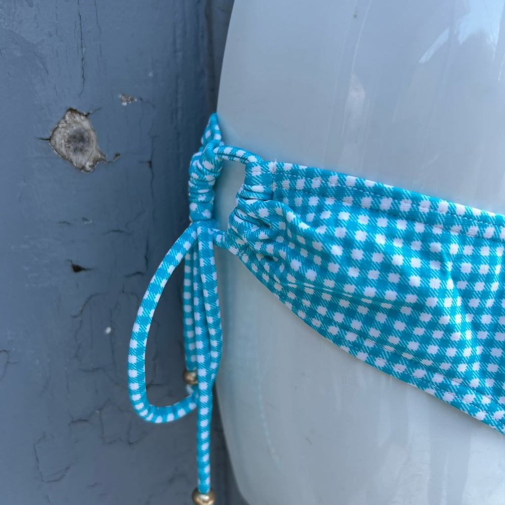 Beach babe Australia bikini. Fun checkered plaid with whimsical boho detailing.