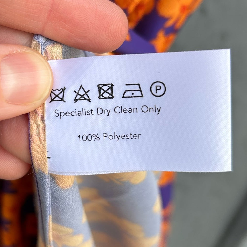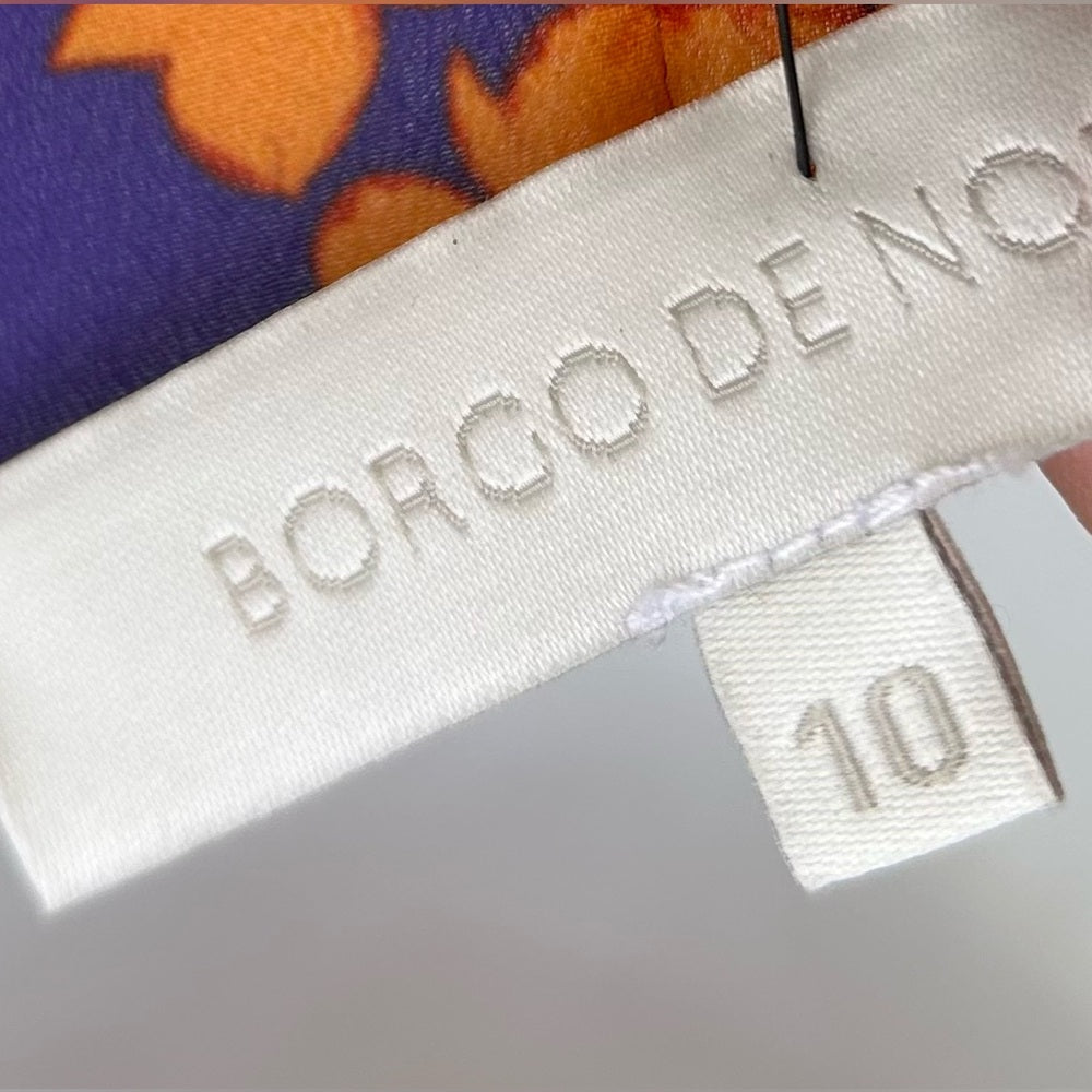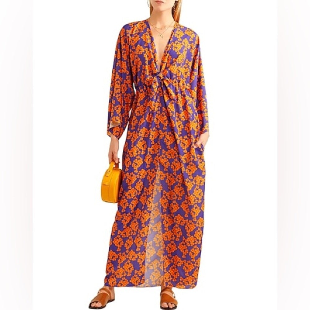 Borgo De Nora Elsa Tie Front Orange and Purple Floral Maxi Dress, size UK 10 (6)