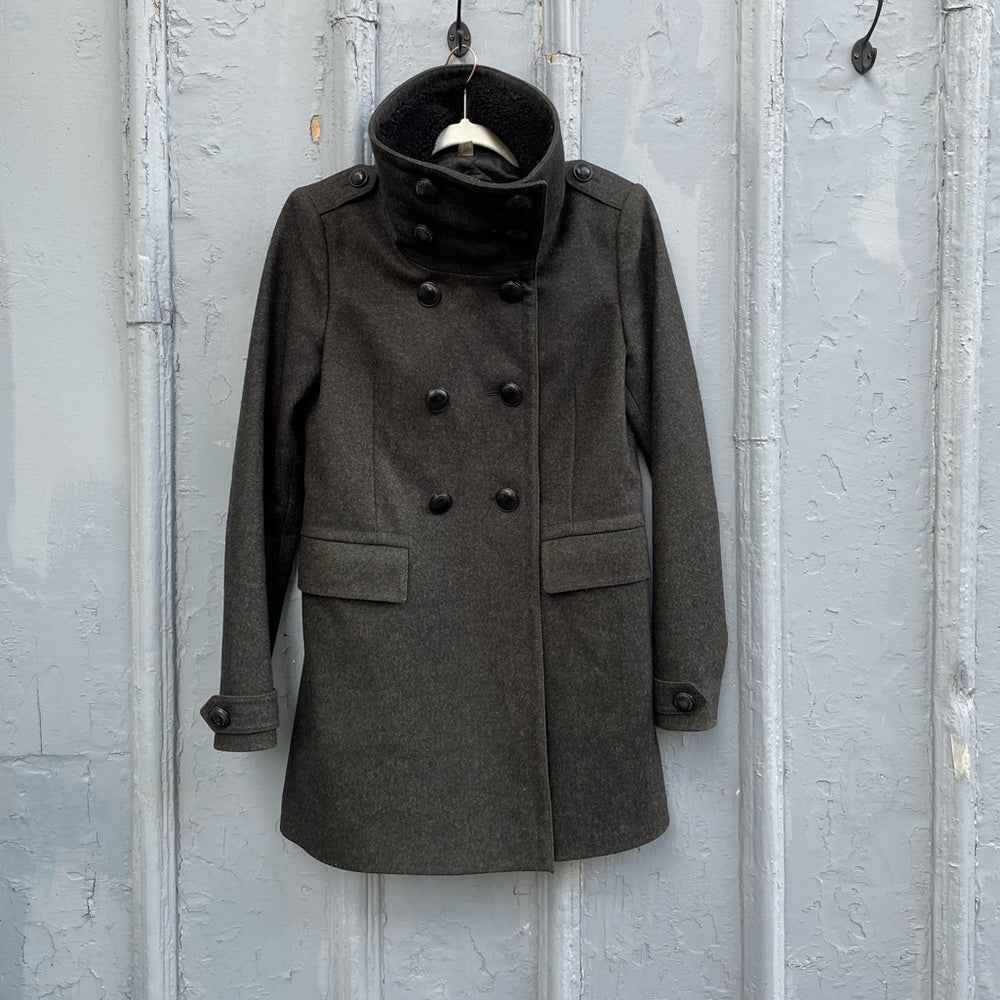 Burberry Brit Olive Green Wool Pea Coat, size 4