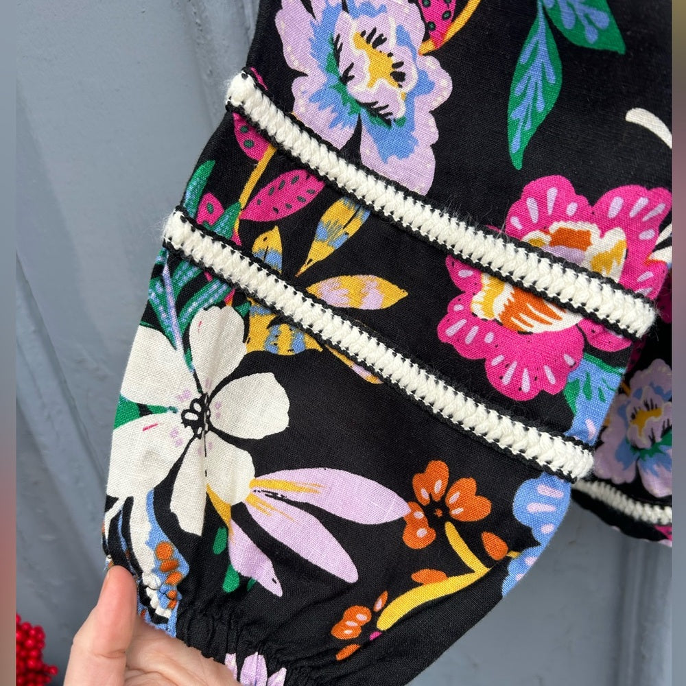 C & C California Linen Floral Blouse. Square neckline, pouf sleeves, slight crop.