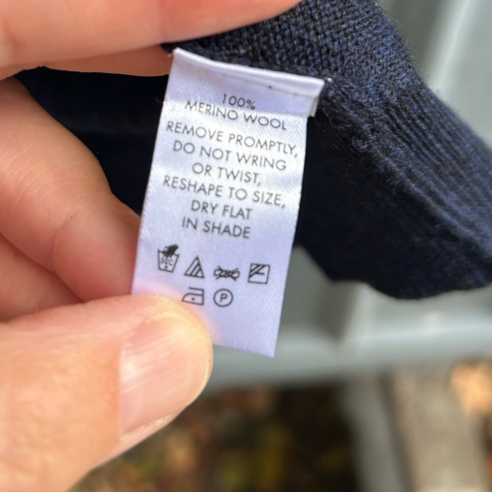 One owner. This sweater was only worn twice and it didn’t fit correctly.