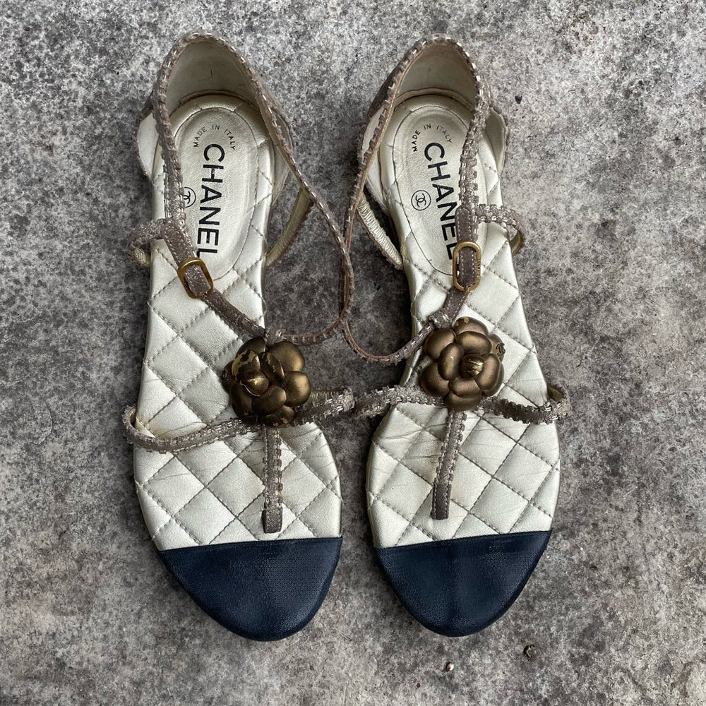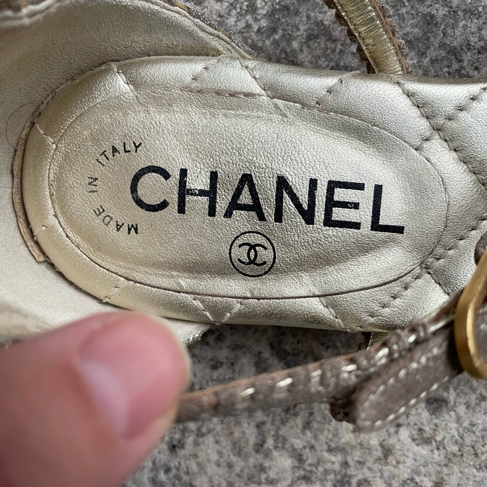 Chanel Gold Quilted Gladiator Sandal Flats, size 39