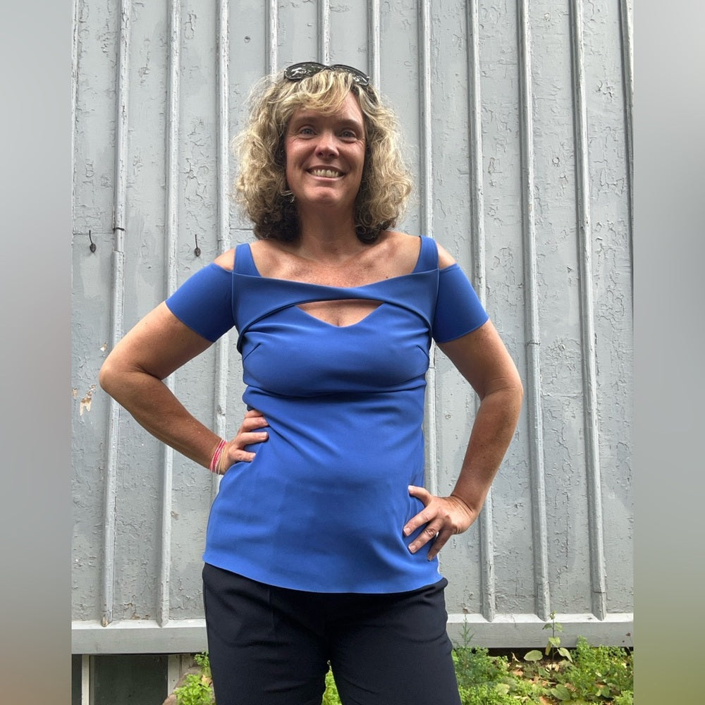 Chiara Boni Off the Shoulder Blouse with cut out detailing. Signature Chiara Boni stretch material. Beautiful body hugging fit.