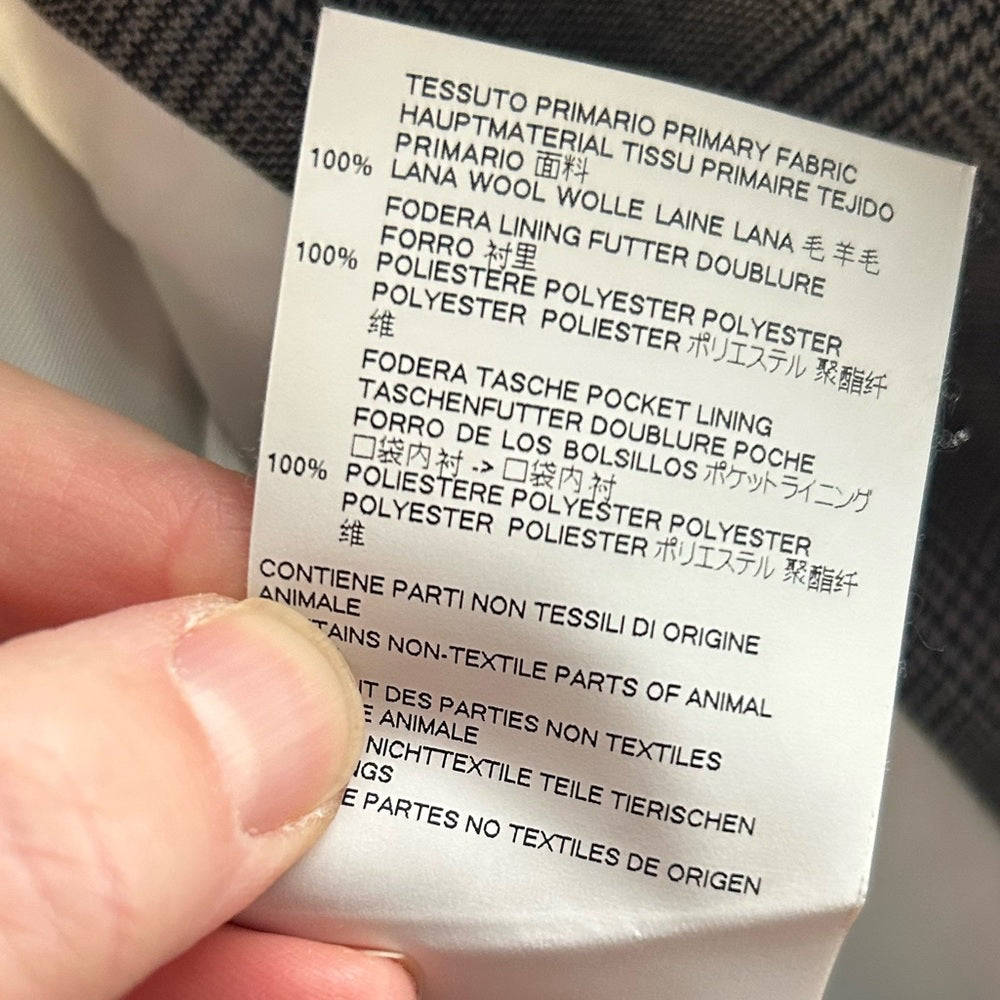 Classic tailored style. Madeline Italy houndstooth wool cloth blazer. Faux pockets, 4th button hole on sleeves is also false, button is there.