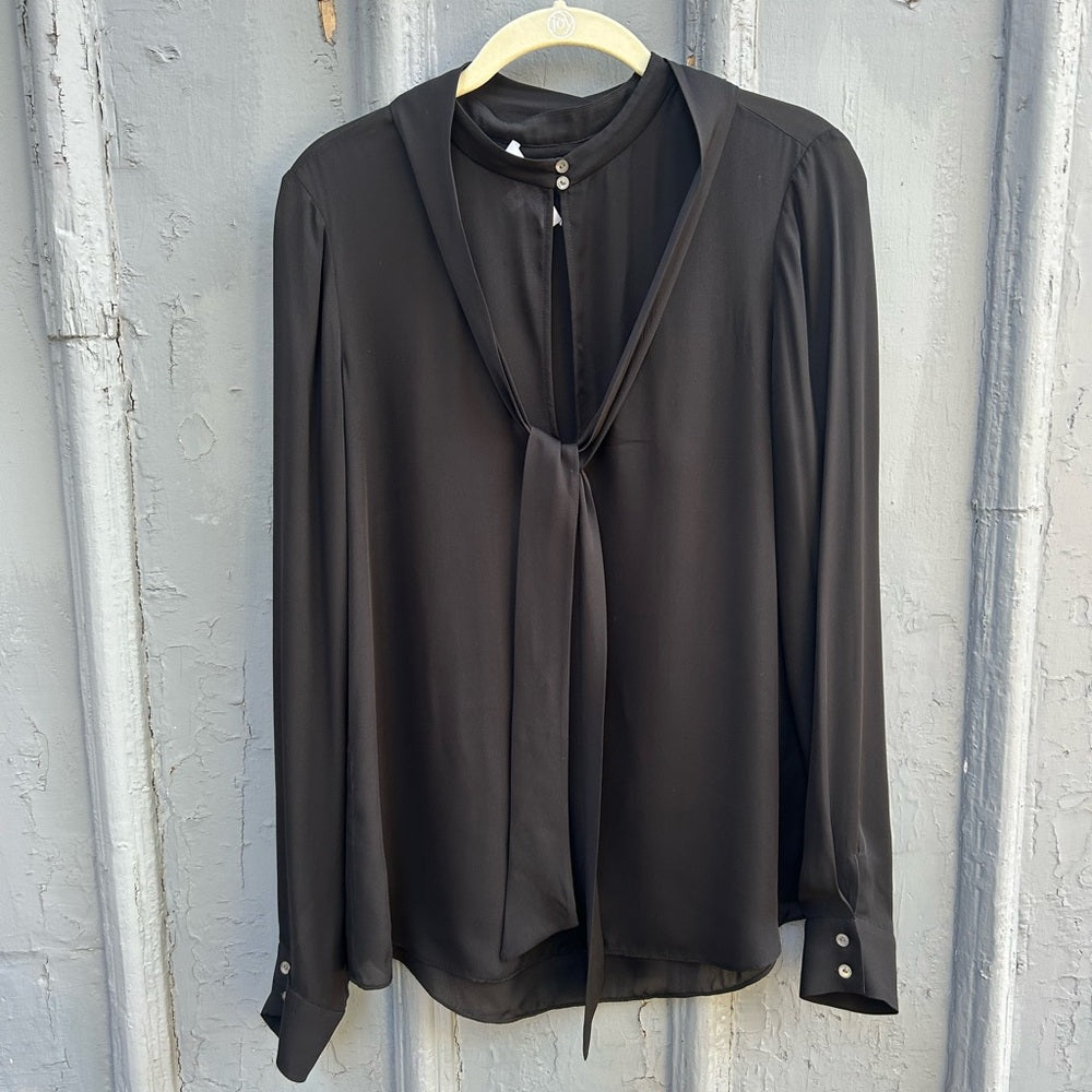 Stunning silk Elizabeth & James tie front blouse. Get creative and tie back or tie forward.