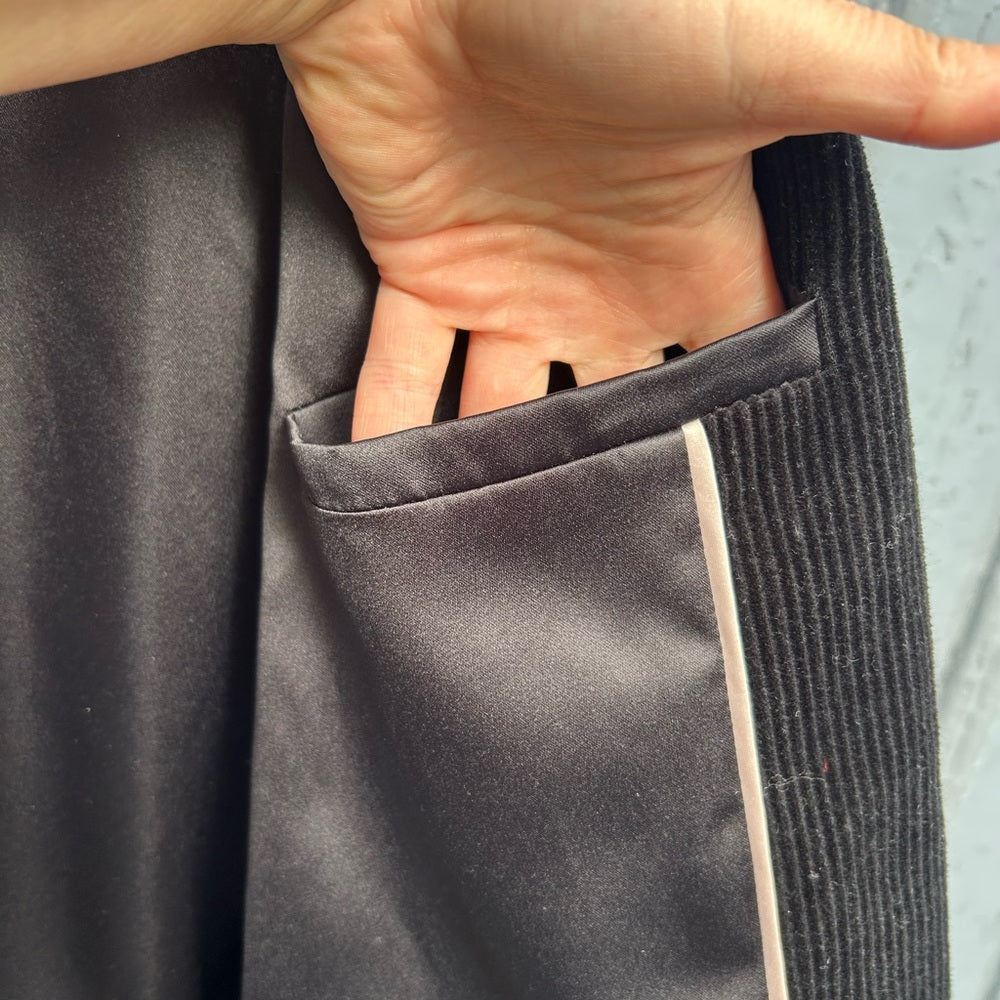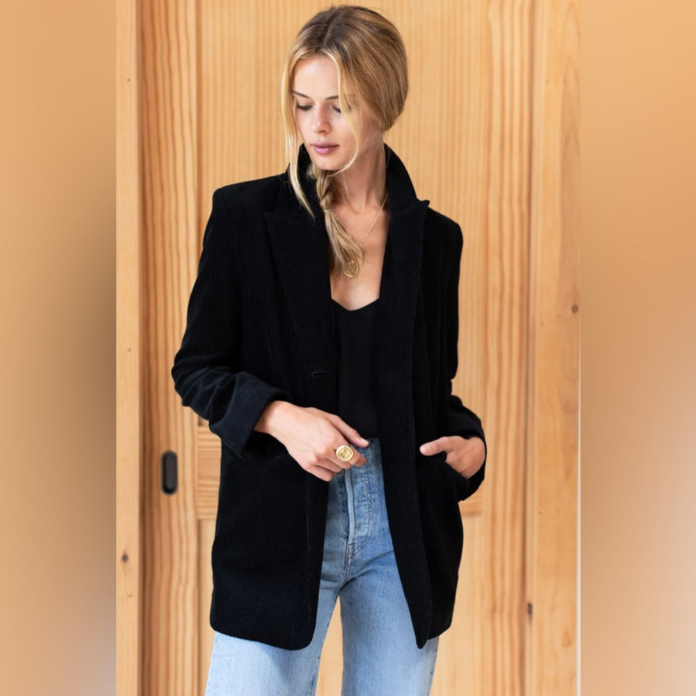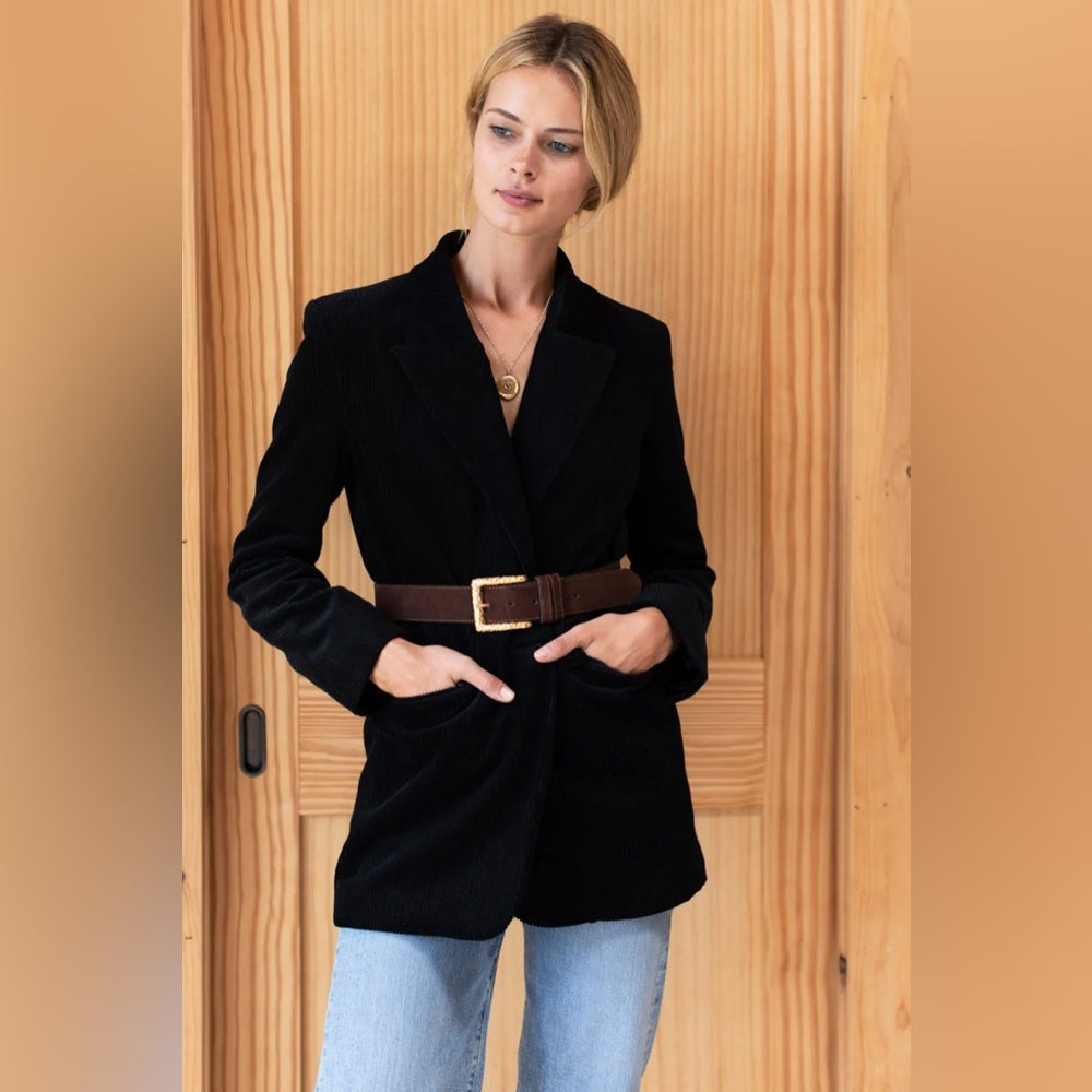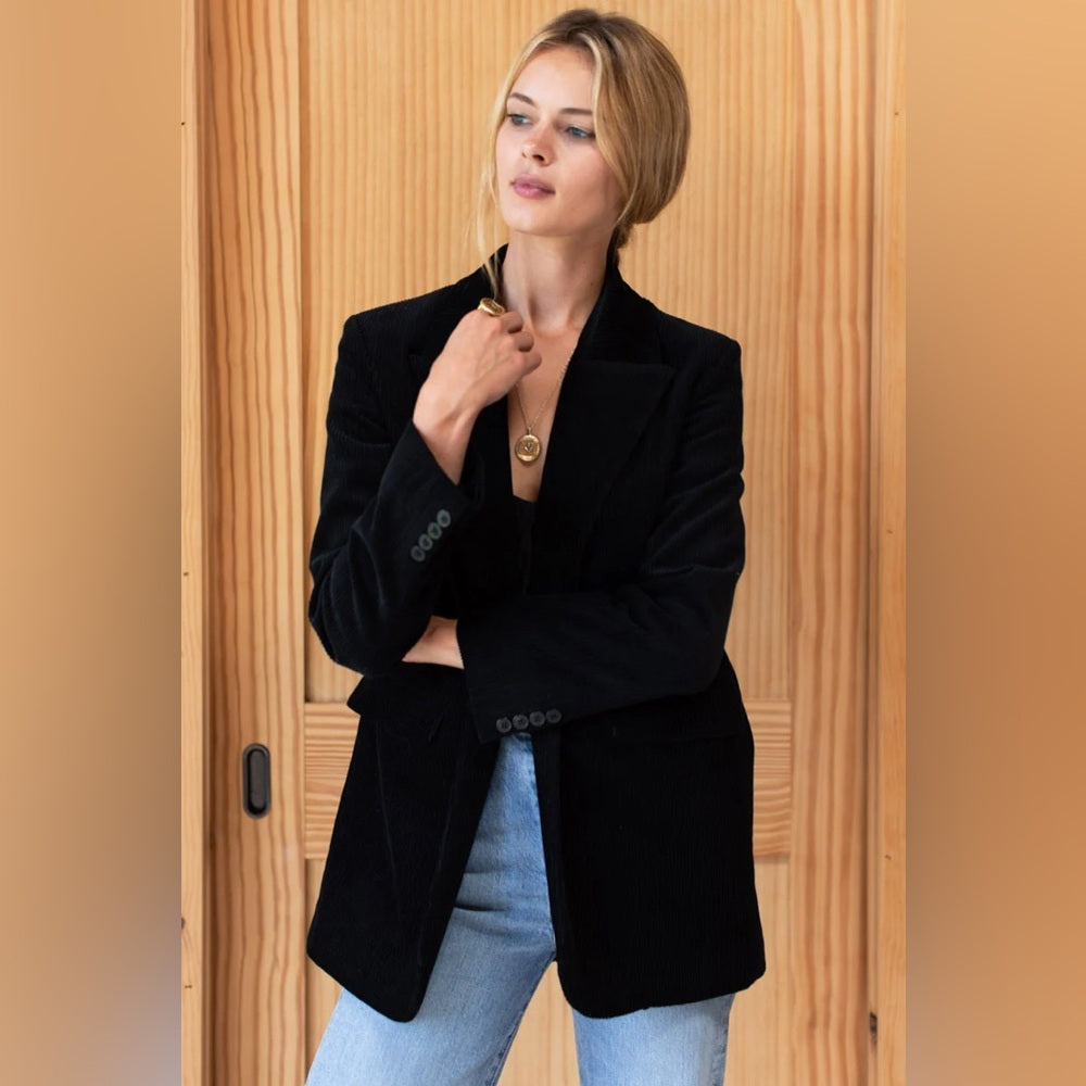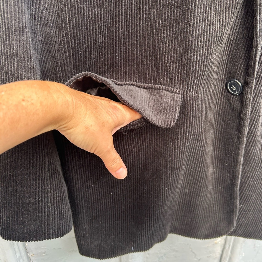 Emerson Fry Black Cotton corduroy, Fully lined, Button front closure, Front flap pockets. Made in NYC.
