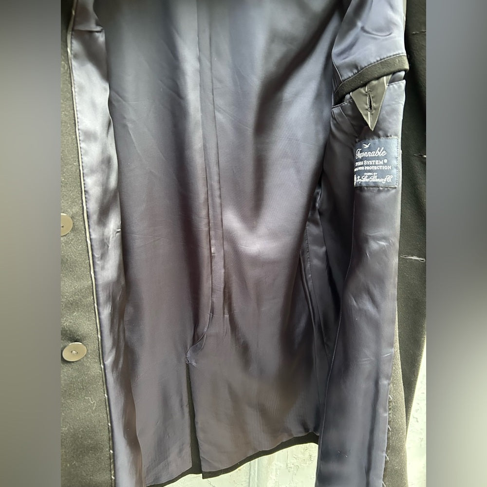 Beautiful Faconnable (French high end brand) Military inspired Pea Coat with Loro Piano fabric. The softest most luxurious wool.