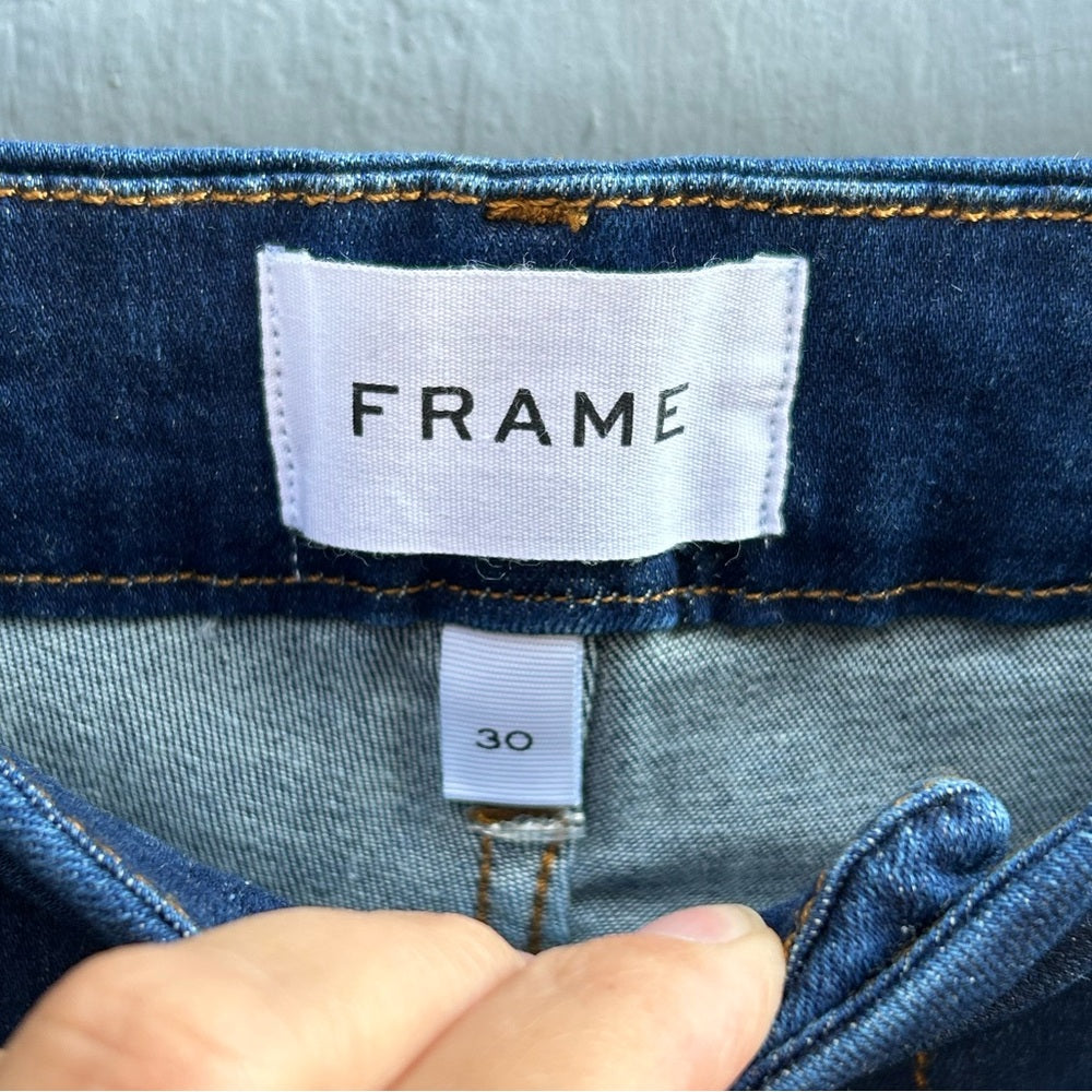 Le Easy Flare is a new Frame icon with high-rise, full-length flared leg finished with a raw hem and a shorter inseam than the beloved Le High Flare.