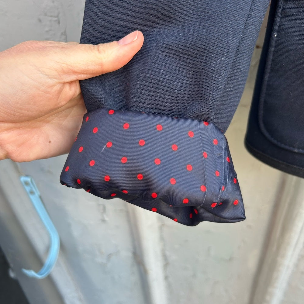 With Classic Private School vibes, a cheeky nod to the playful with the polka dot lining at the cuffs.