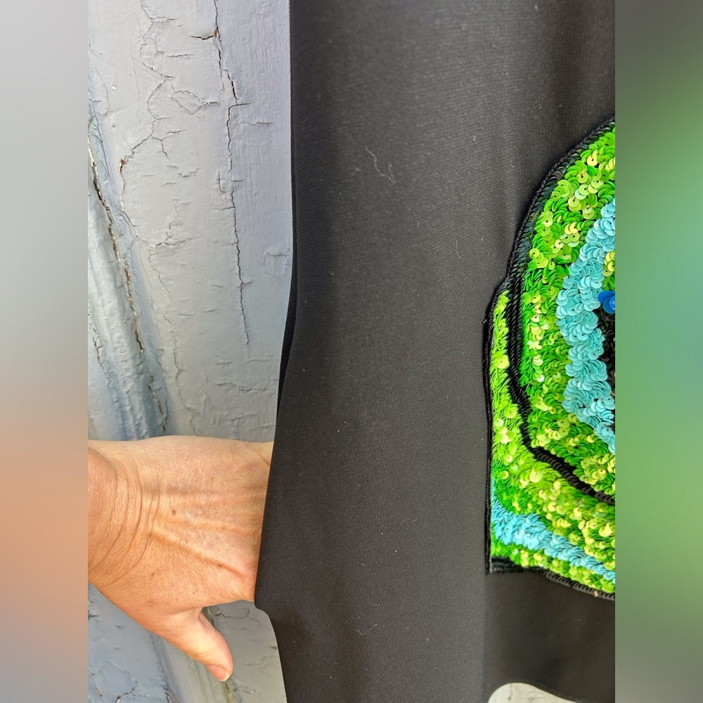 Beautiful black sequinned shift dress with pockets. From Resort line 2015.