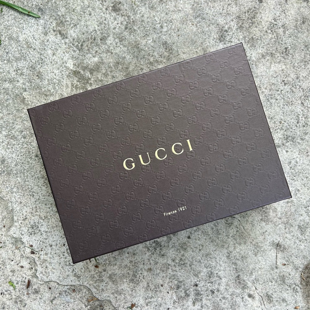 One owner. Comes with box and dustbag. In very good condition. One small bit of debris on right inner heel, pictured. Couple small ticks in rear of heels, pictured as best as I could.