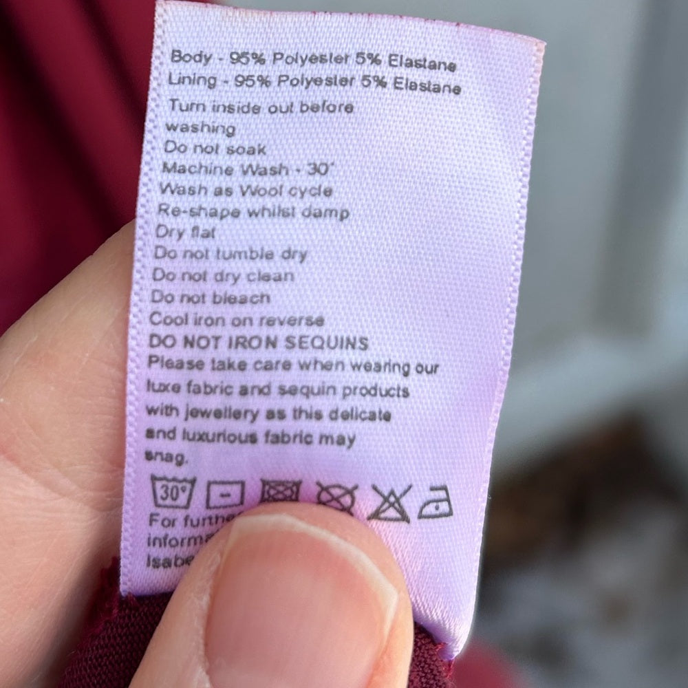 Isabella Oliver Evening Dress. Beautifully figure hugging with ruched sides, deep V neck, long sleeves, and extra long, with the beautiful sequinned shoulder details.