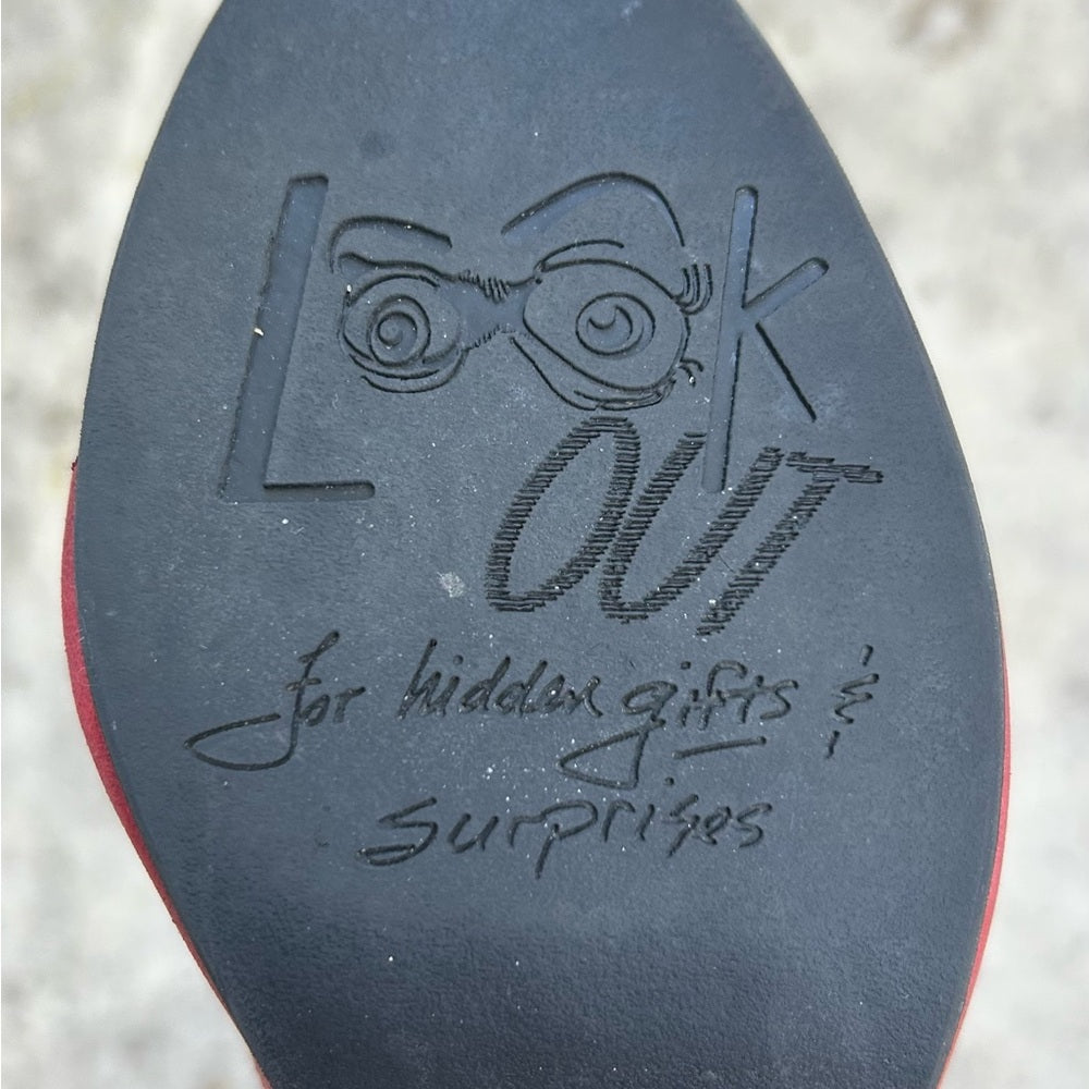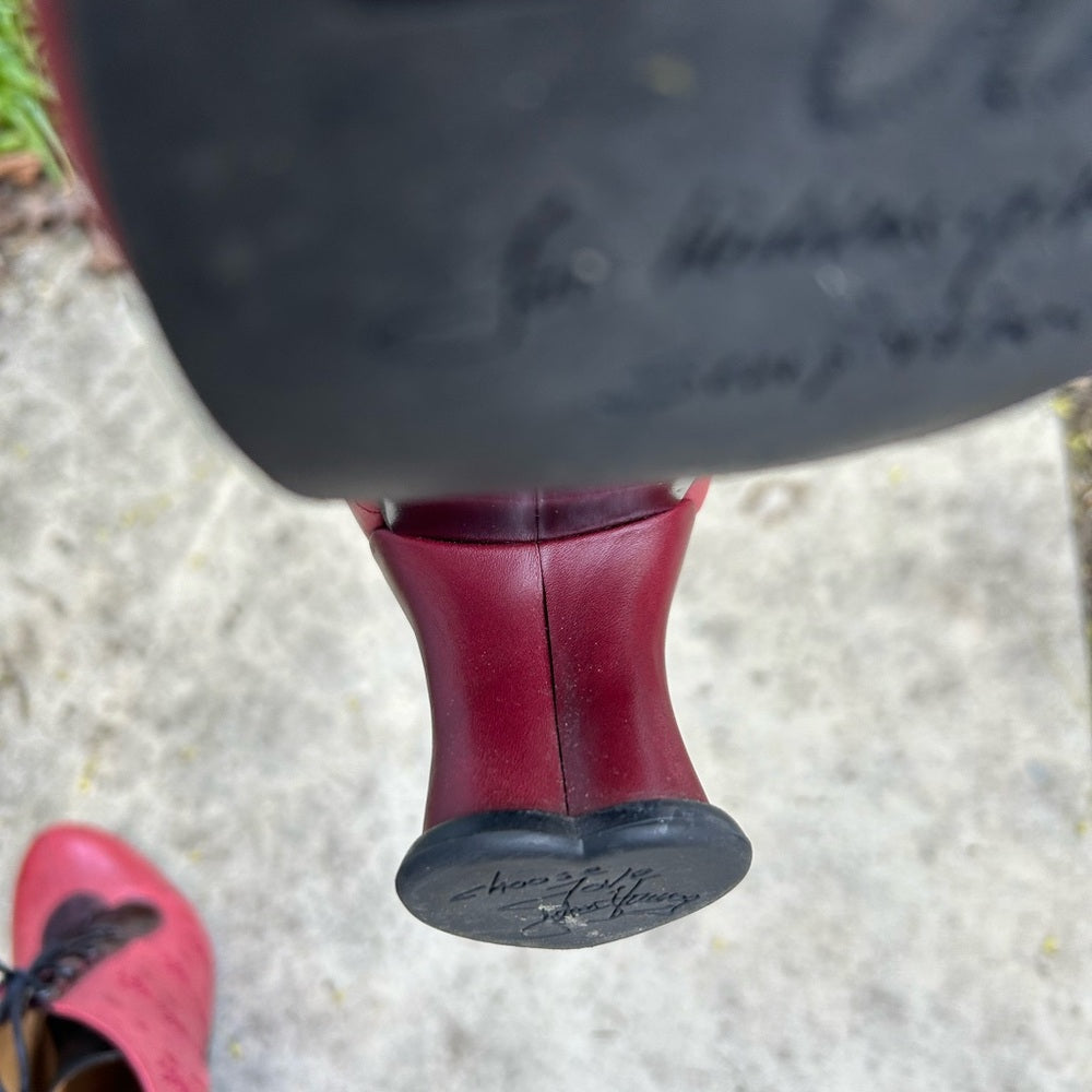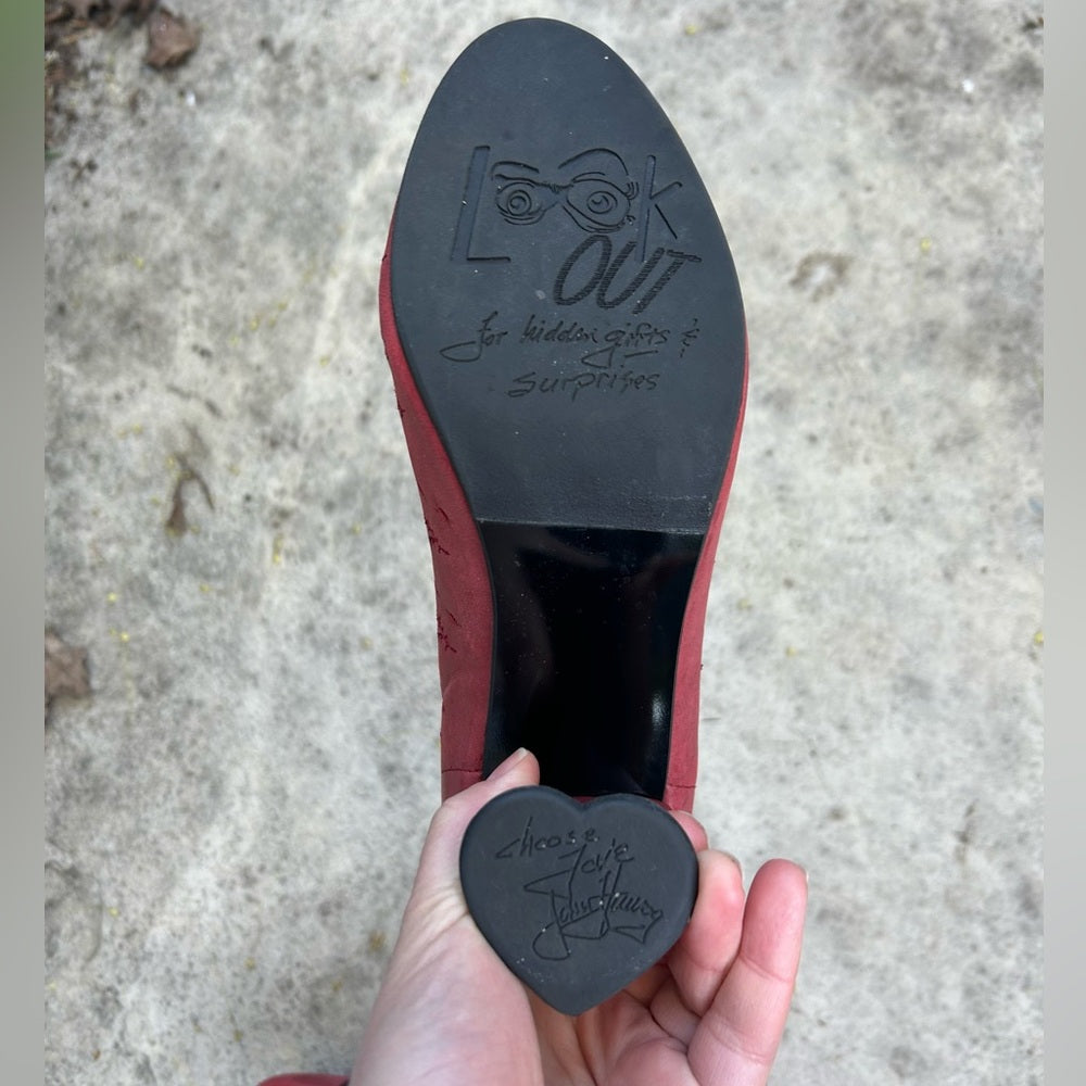 John Fluevog Red Look Out Fascination lace up leather heel, BNWOB, size 9