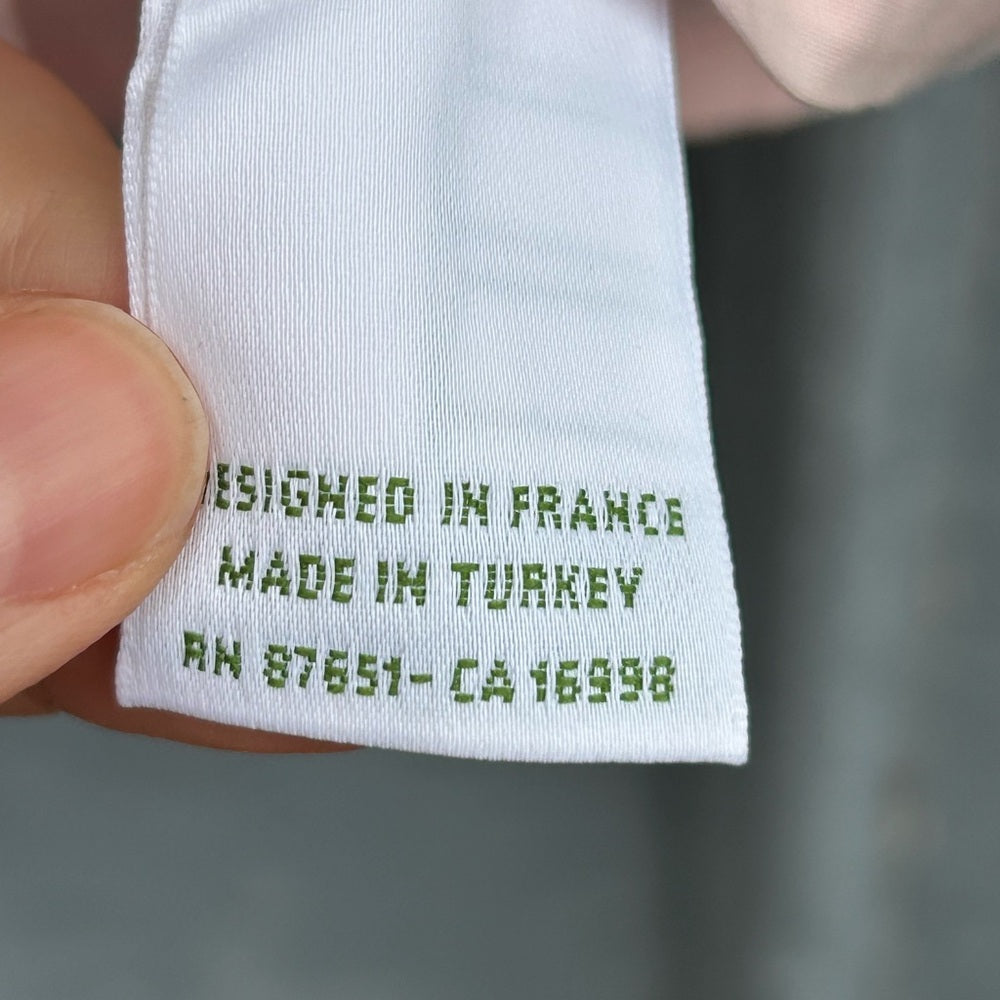 Lacoste Pink Short Sleeve Button down. Shoulder detailing. Slim silhouette.