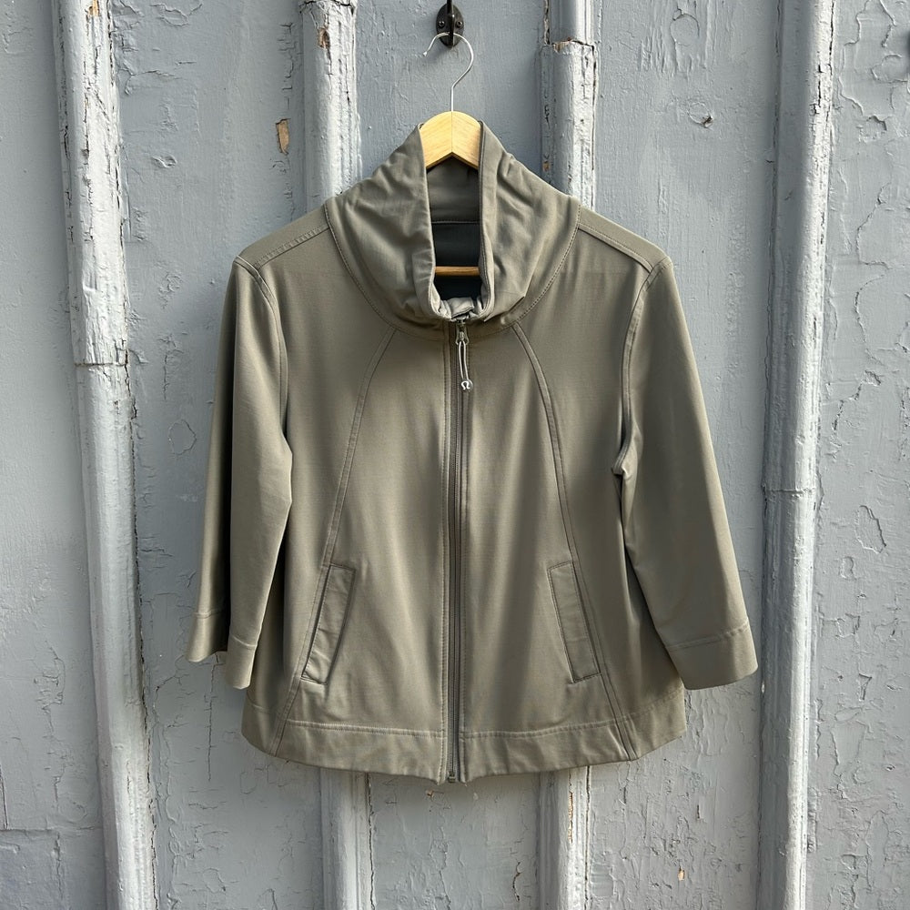 Perfect for that in between weather. Cropped swing jacket, shorter sleeves, mesh back detailing.