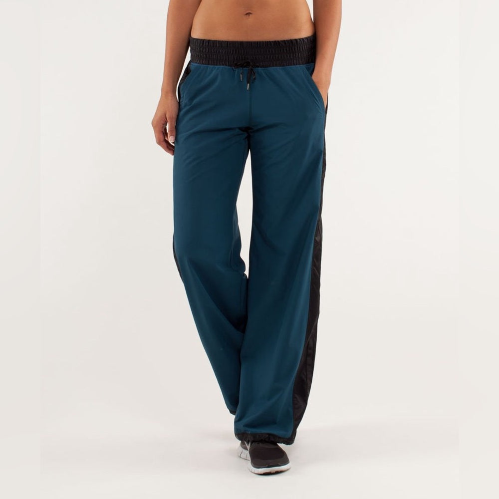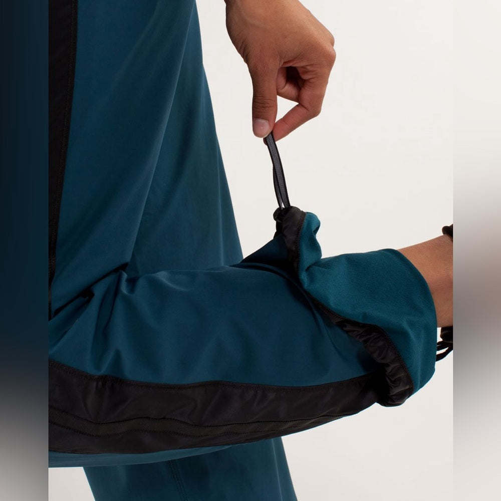 We designed these loose-fitting pants to help protect us from unpredictable weather when we're on our way to the track. We layer them over our run tights to keep us warm and dry pre-run. Cinchable drawcords at our ankles prevent hems from getting soggy when we're skipping through puddles.