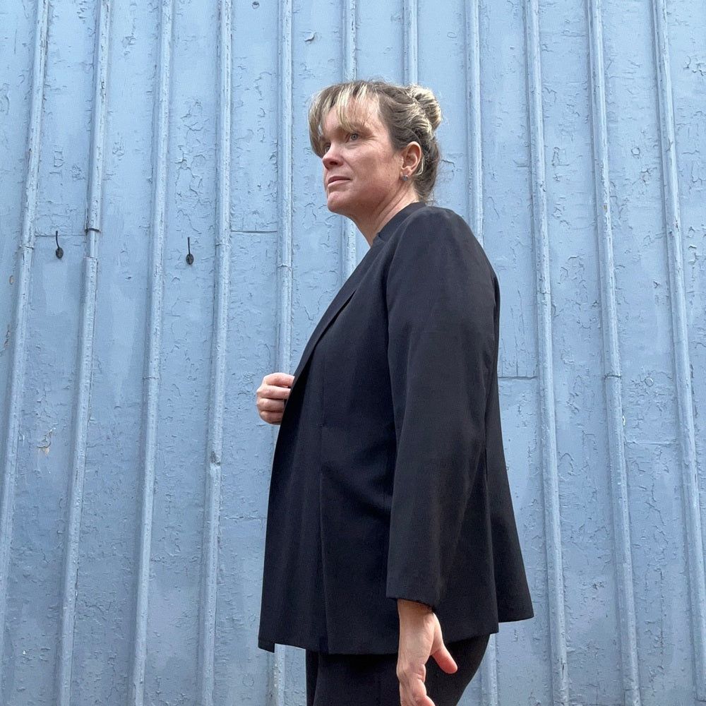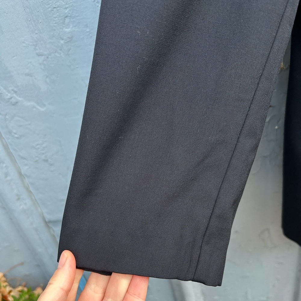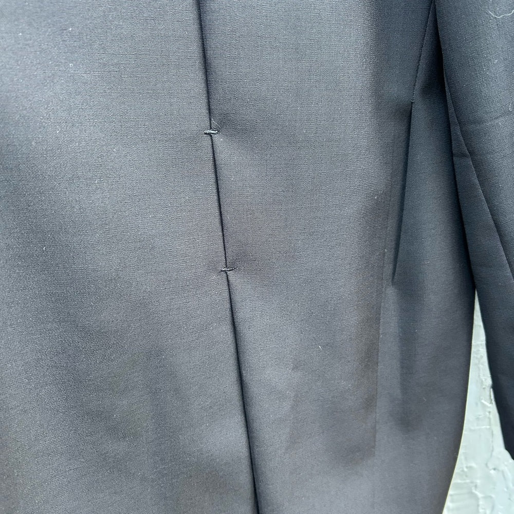 Beautiful tailored with front pleated vents, no pockets, light wool material. Open Front design (no fastening button).