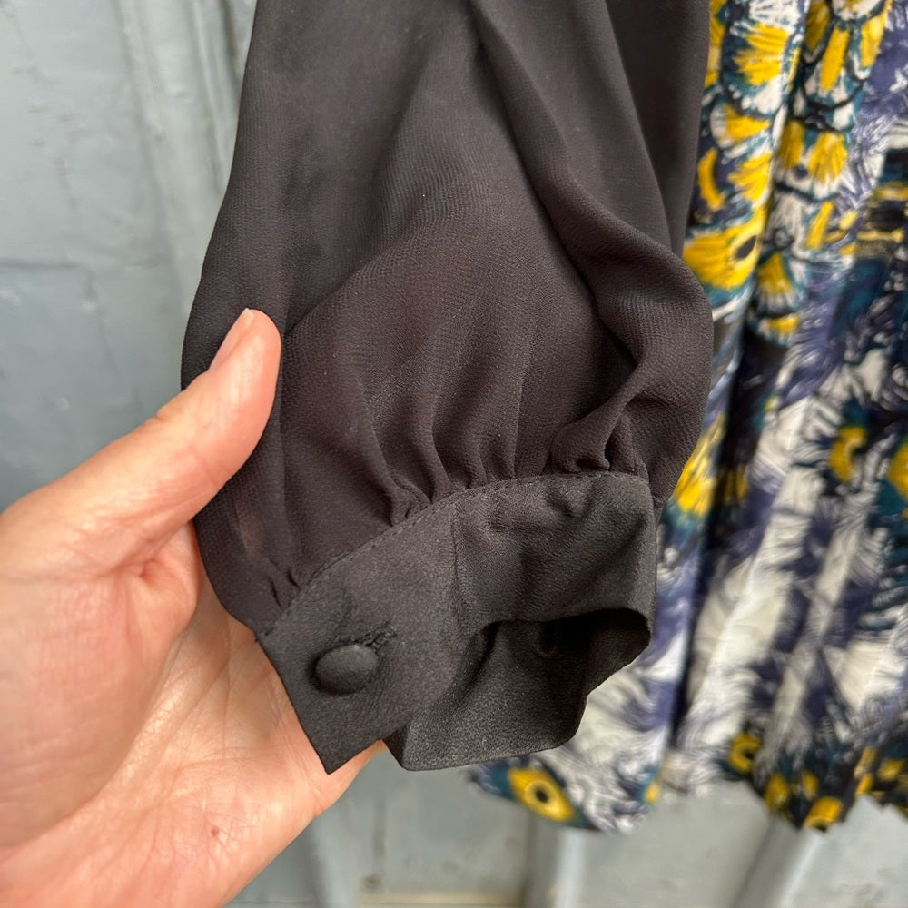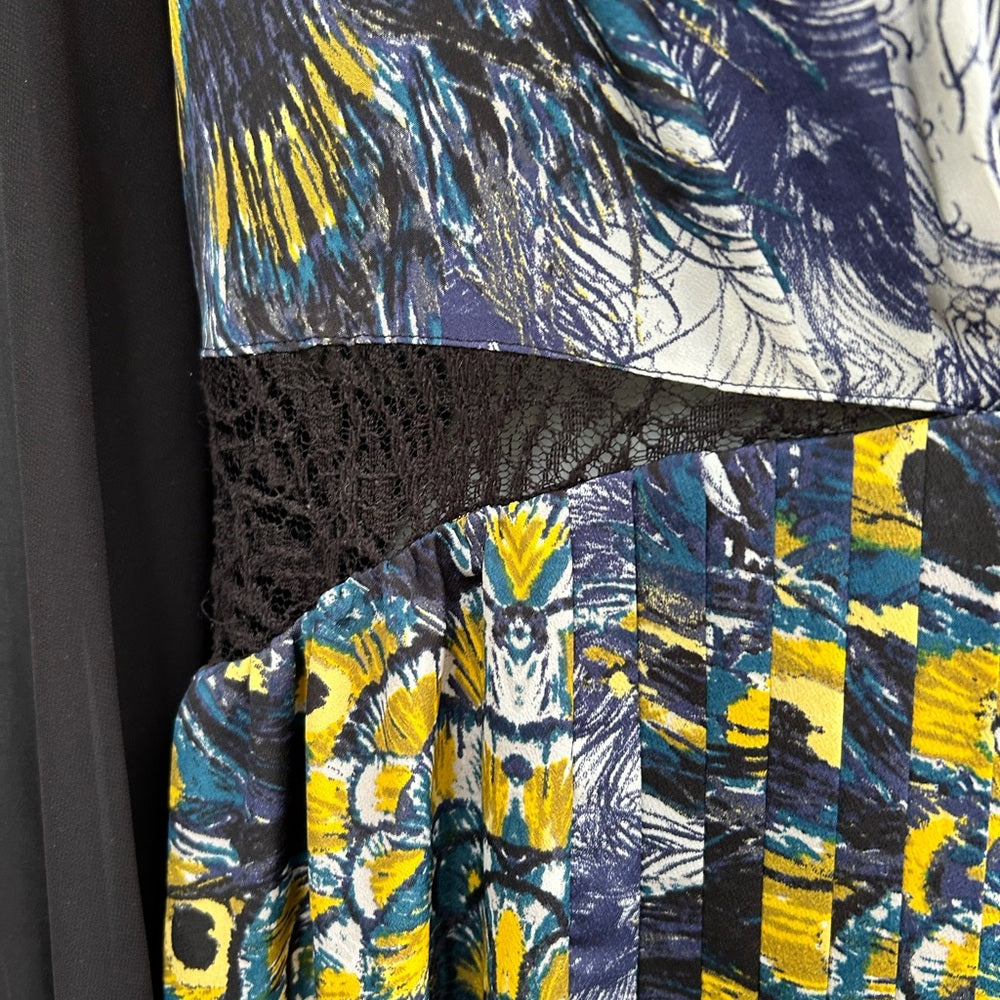 Peacock patterned with chiffon sleeves and lace cut out detailing Nicole Richie for Impulse pleated dress.