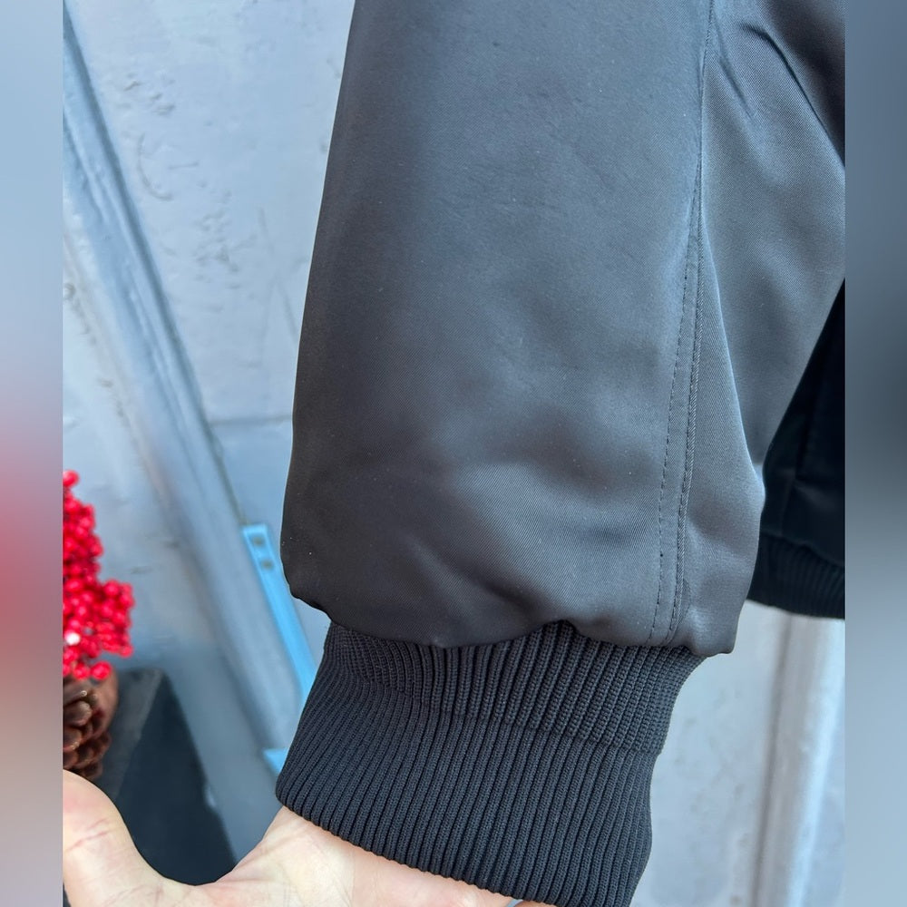 Bomber jackets are tough, and this one is no exception. Utilitarian and sleek with a satin finish, you'll want to throw it on over every outfit. Good for you, bad for the other jackets in your wardrobe—they'll be jealous of your new go-to. Oversized fit.