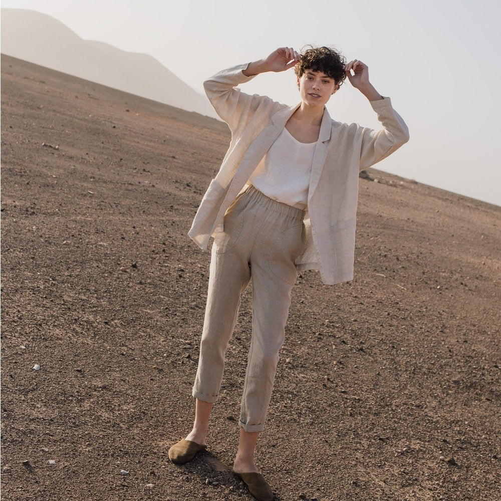 Two generous, circular patch pockets at each hip allow you to carry all your things but without adding any extra volume.