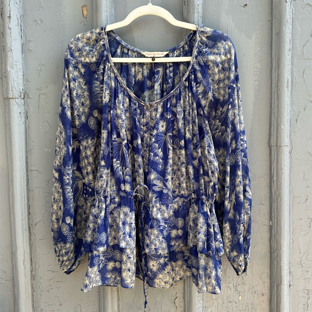 Rebecca Taylor blue silk, cotton blouse, size 6
