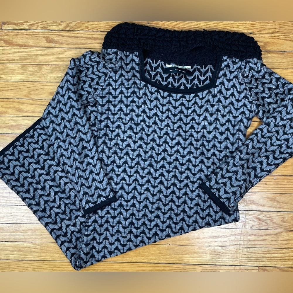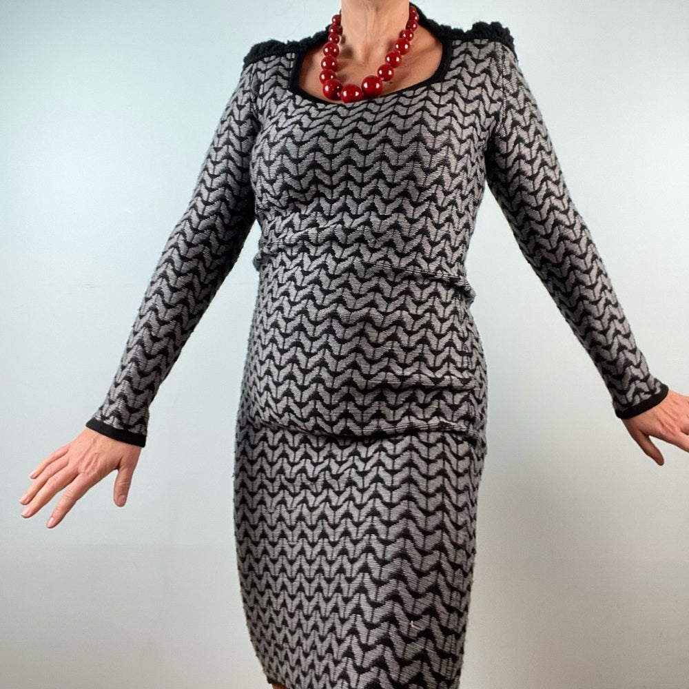 Roland Mouret knit sweater dress. Chunky boucle knit shoulders, reverse knit bodice (last picture is of inside of dress). Heavy shoulder knit epaulettes add detailing to this wonderful dress.