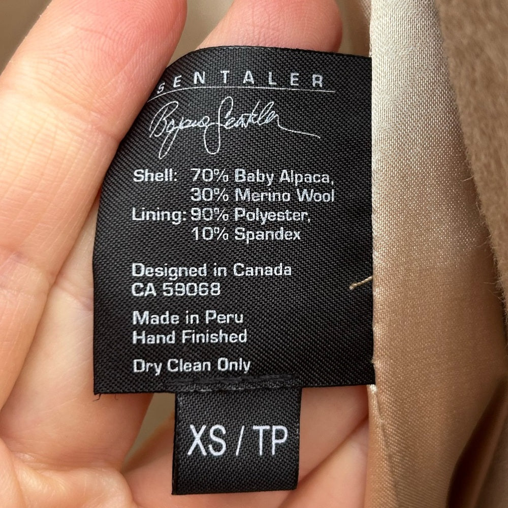 Sentaler Baby Alpaca Mid Length Hooded Wrap Coat, size XS