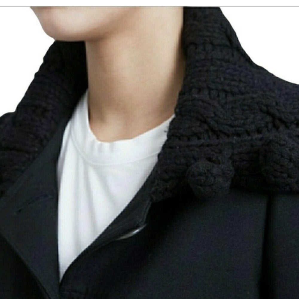 Smythe Knit Shawl Collar Wool blend crop jacket. Front pockets, knit collar with pin pin detailing. Cropped style.