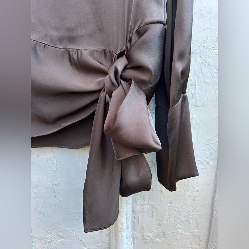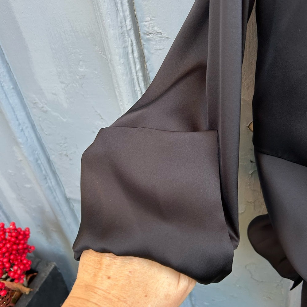Stella McCartney Black Silk long sleeve tie waist blouse, size 42