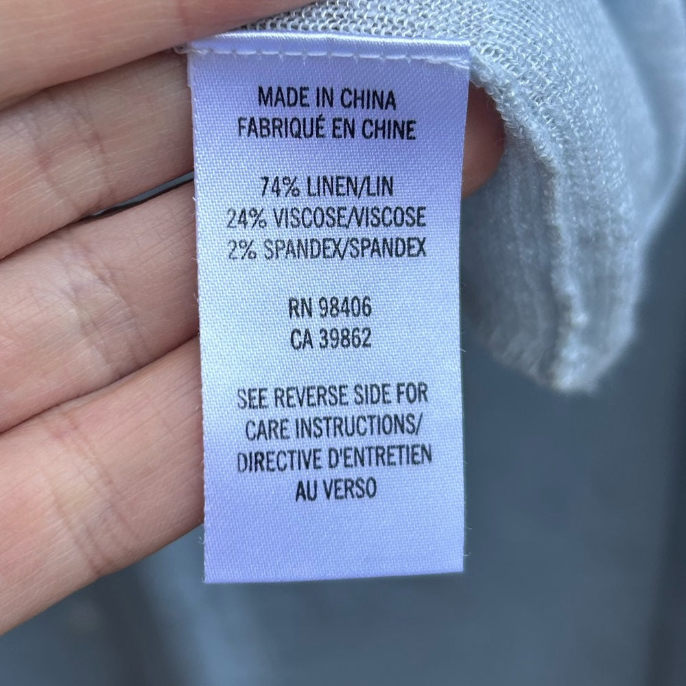 Beautifully light and layer-able with a beautiful waterfall drape. Linen blend.