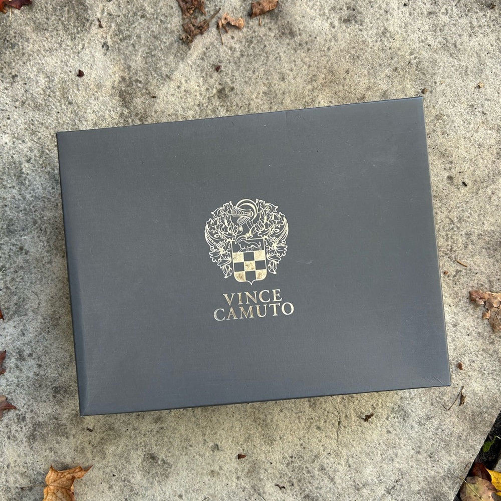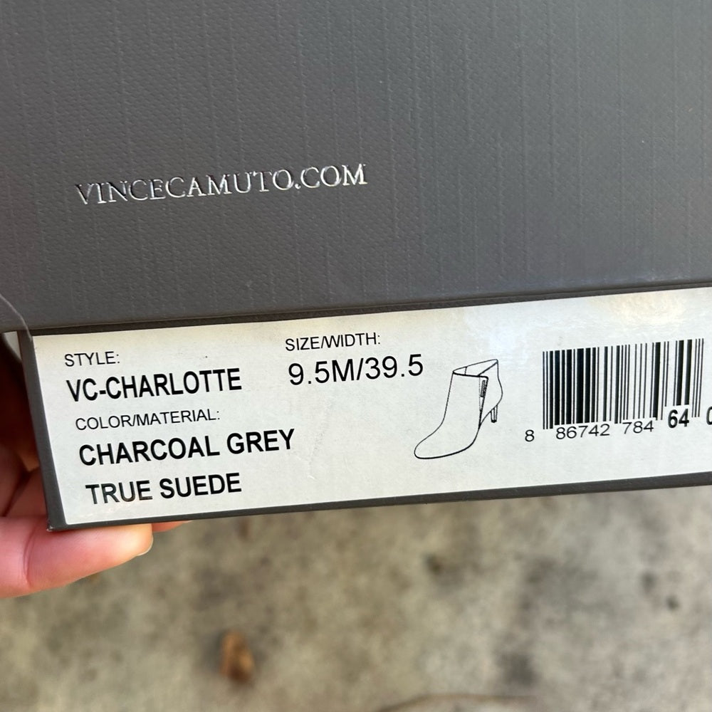 Vince Camuto Charlotte Suede Ankle boots. Beautiful suede with silver accent piece, interior zip entry, stiletto style heel.