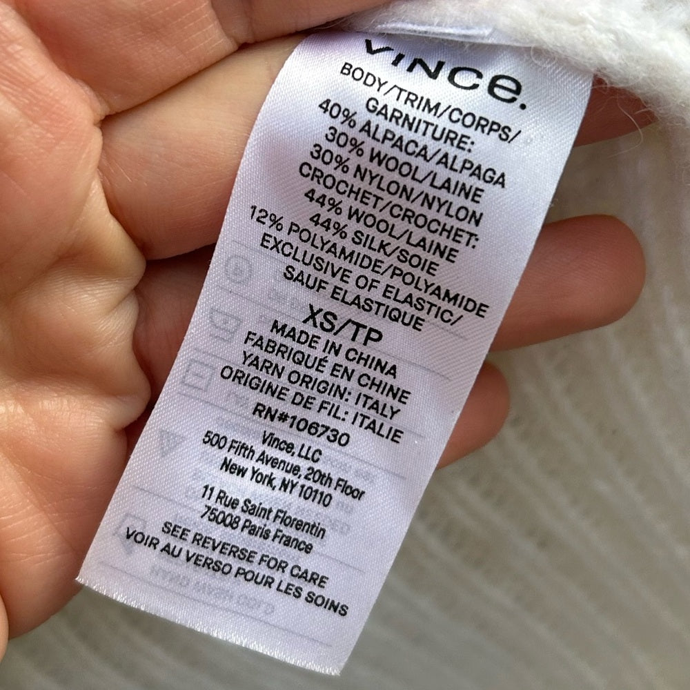 Vince Cream mock alpaca wool turtleneck with crochet, size xs